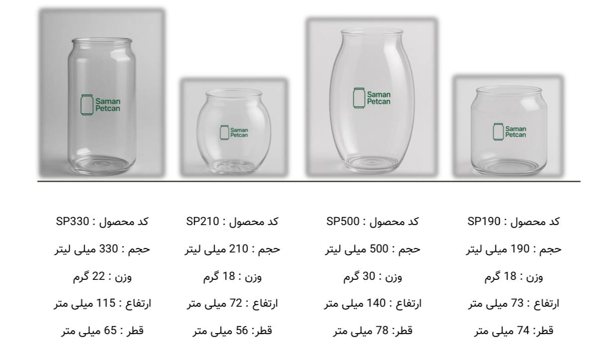 بطری های پت شفاف سامان اکسیر با گرید غذایی که با بهره گیری از تکنولوژی روز و دستگاه های کن سیلر راه حلی مدرن بهداشتی و زیبا برای بسته بندی انواع نوشیدنی ها دسر ها خشکبار و محصولات خانگی ارائه می دهد